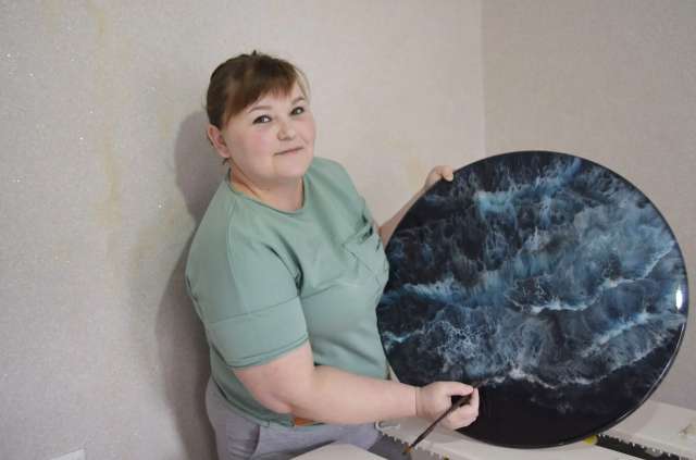 - Творчество для меня – это постоянный поиск чего-то нового, интересного, прекрасного. Я всегда любила вышивать бисером, рисовать, создавать красоту своими руками, - делится Ирина. - Необычную технику работы с эпоксидной смолой я увидела на просторах интернета несколько лет назад. И сразу поняла для себя, что я тоже так хочу. Мне очень нравится это прекрасное направление в творчестве. Я влюбилась в эту технику с первого взгляда. Меня до сих пор завораживает, что внутри изделий, словно в прозрачной родниковой воде, оживает яркая картина. На самом деле из смолы можно делать всё, что угодно: и большое, и маленькое. Всё зависит от фантазии. Решила, что буду работать «по-крупному», то есть делать объемные изделия. Но прежде чем приступить к творческому процессу, я посетила несколько мастер-классов. Теория-теорией, но когда ты видишь своими глазами, как работает профессионал, всегда лучше. Первая моя работа - это настенные часы. Я была просто в восторге от того, какие они получилась красивые и необычные. Сейчас эти часы украшают дом моей сестры. Она для меня самый лучший критик (хотя ей всегда все нравится).
